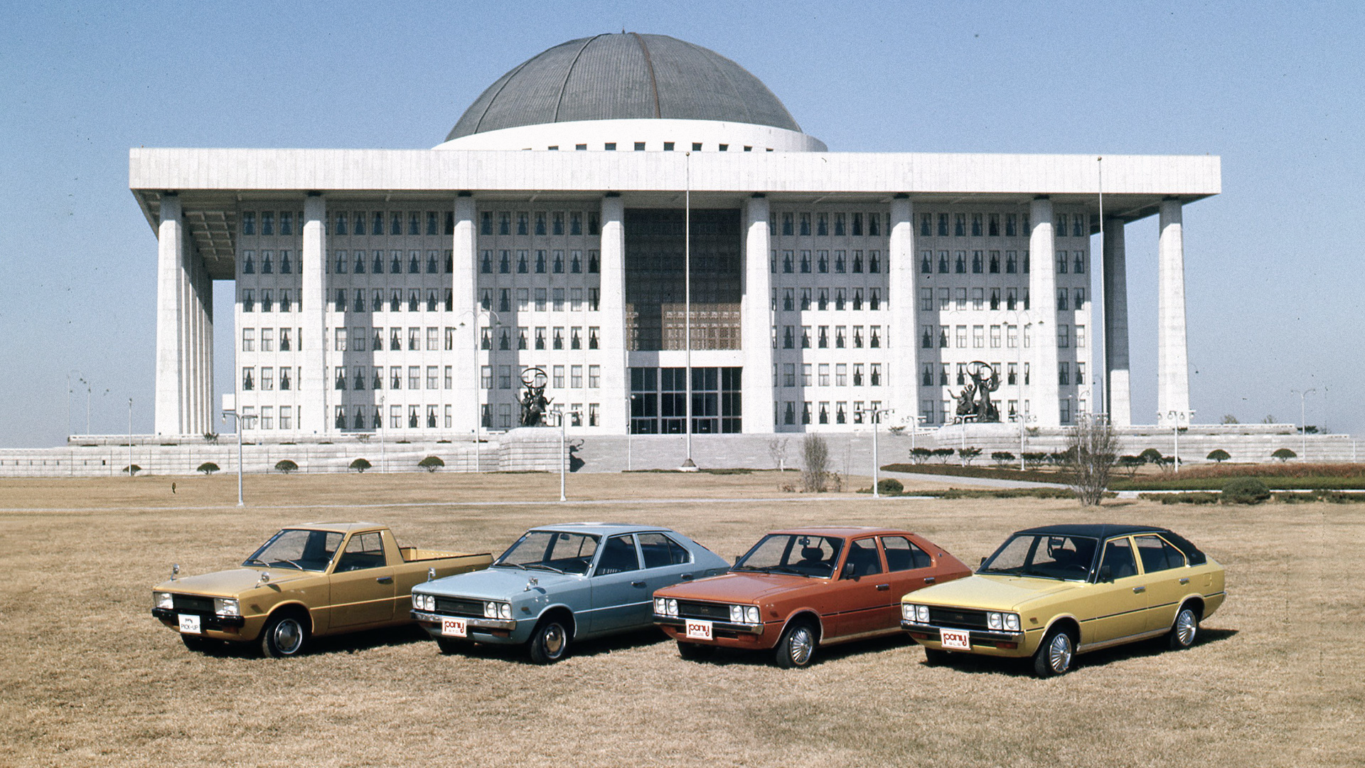 그러다 1974년 6월, 마침내 현대자동차의 고유 모델인 '포니'가 시작차 형태로 모습을 드러냈습니다. 세계에서 16번째, 아시아에서는 일본에 이어 2번째로 독자 모델을 갖는 순간이었습니다. 포니는 그 해 10월 이탈리아 토리노 국제자동차박람회에도 출품됐는데, 당시 현지 언론인 라 스탐파는 "한국이 자동차공업국의 대열에 끼어들었다는 제하의 기사를 게재하기도 했습니다. 포니라는 차명은 당시 대한민국에서 공모를 통해 지어졌습니다. 수출 지향적인 부분도 반영된 것이었습니다.