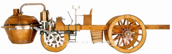 1482년, 레오나르도 다빈치가 태엽 자동차를 고안합니다. 그 후 1698년 토마스 서베리가 증기기관을 발명하고, 1712년과 1765년에 토마스 뉴커먼, 제임스 와트가 각각 뉴커먼식, 와트식 증기기관을 발명합니다.