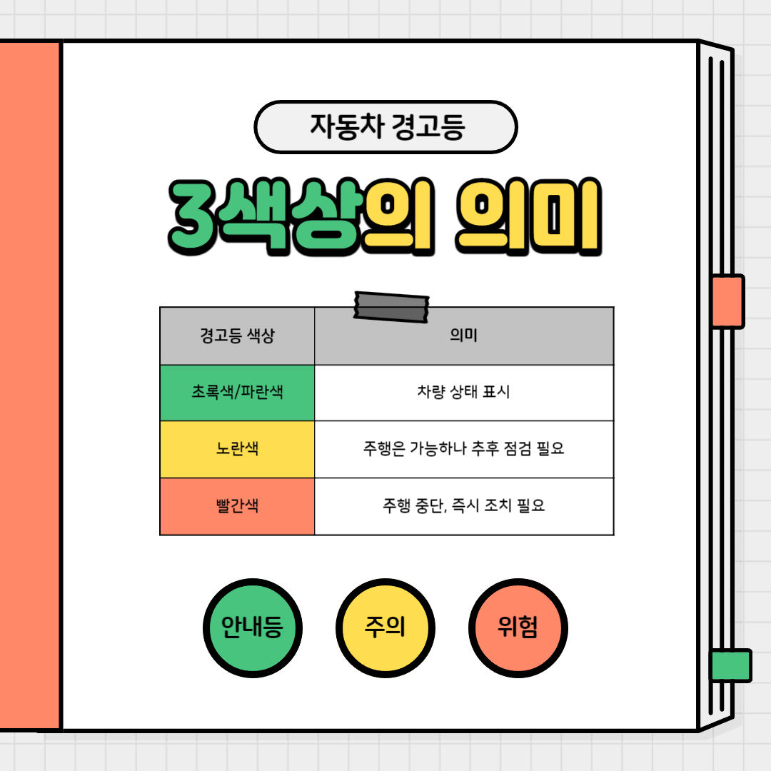 경고등 색상의 의미를 알아보겠습니다.