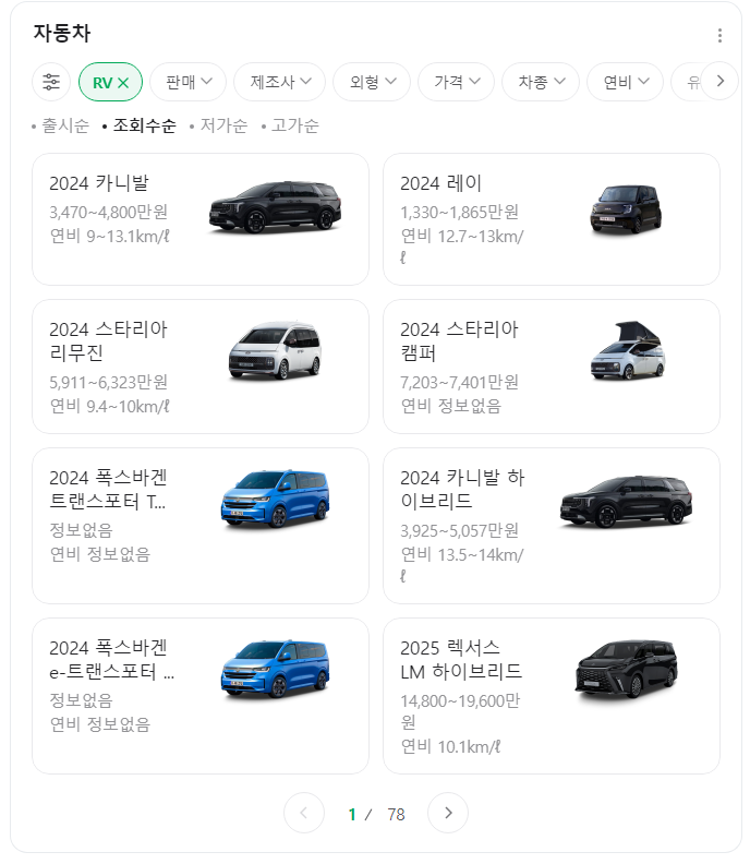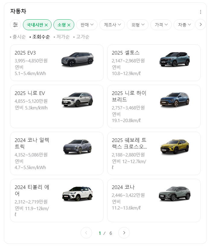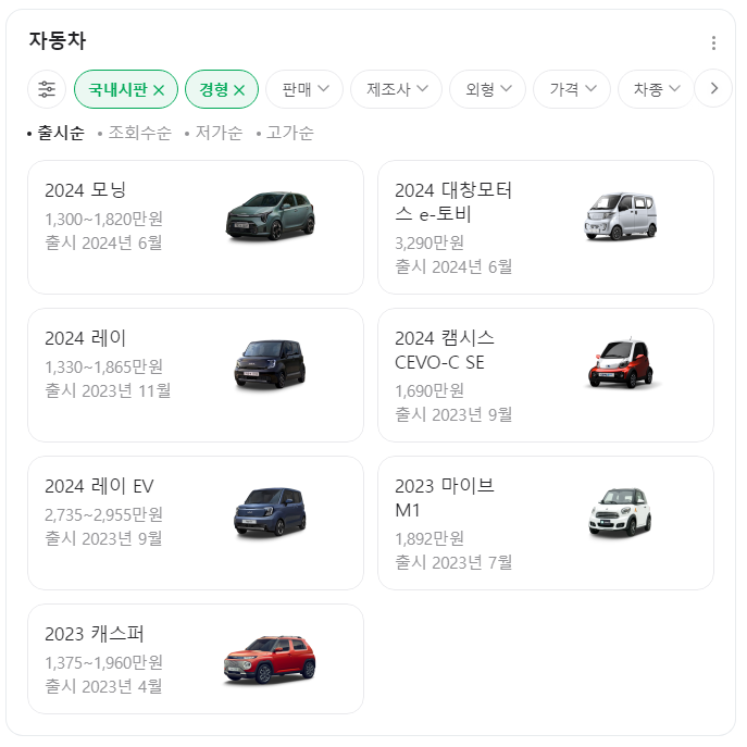 그렇다면 차급 별 차량에 대해 알아보겠습니다. 먼저 경형입니다.