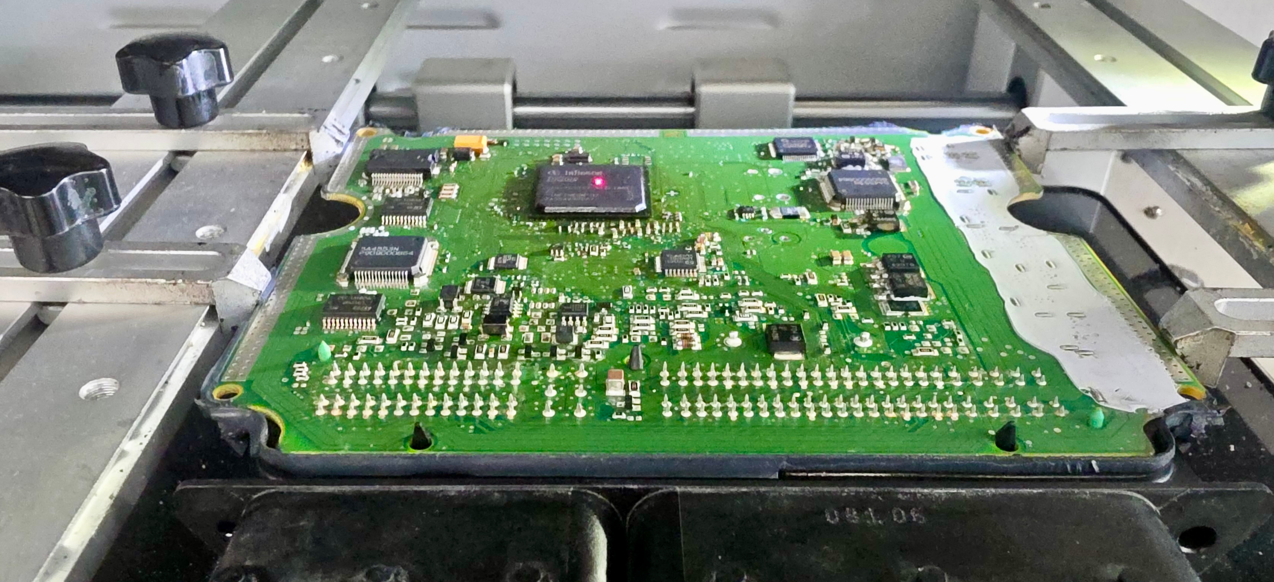 BGA 리워크 스테이션으로 DDE 내부의 손상된 회로를 세척하고 복원하는 작업을 진행